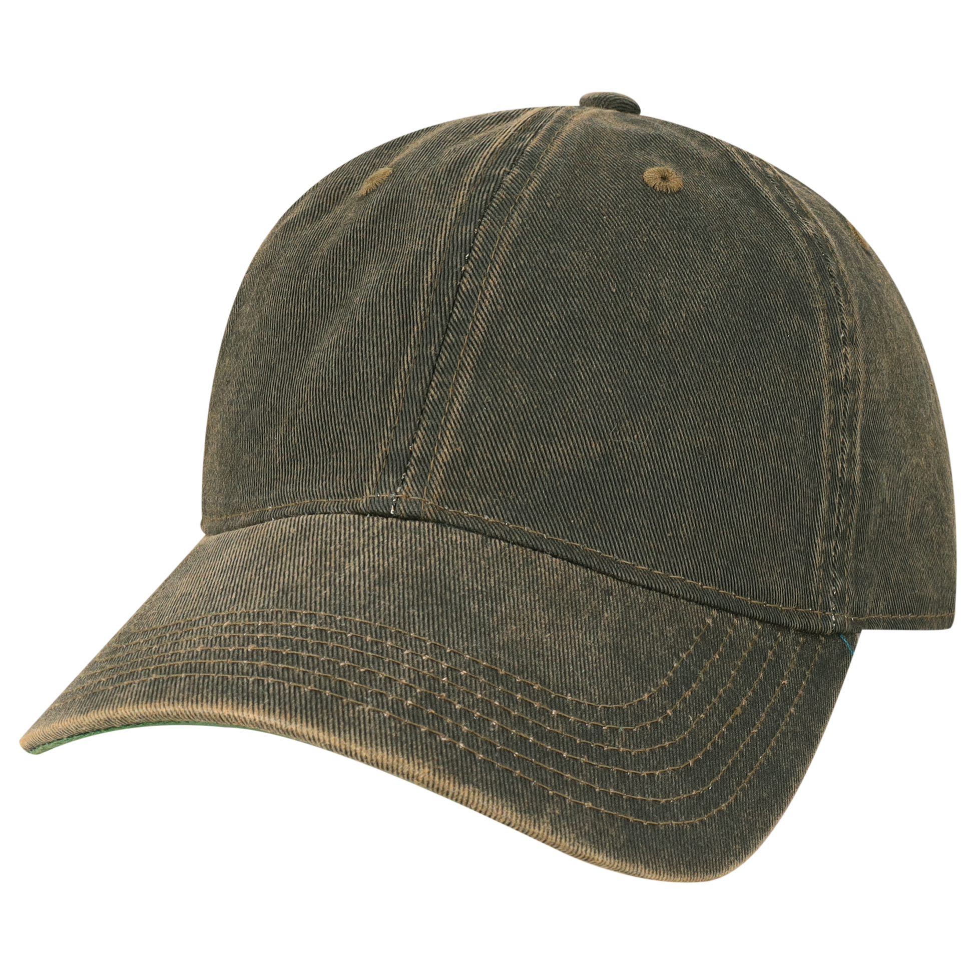 - Details: Full crown top-stitch, coated “dirty” wash, kelly-green under visor