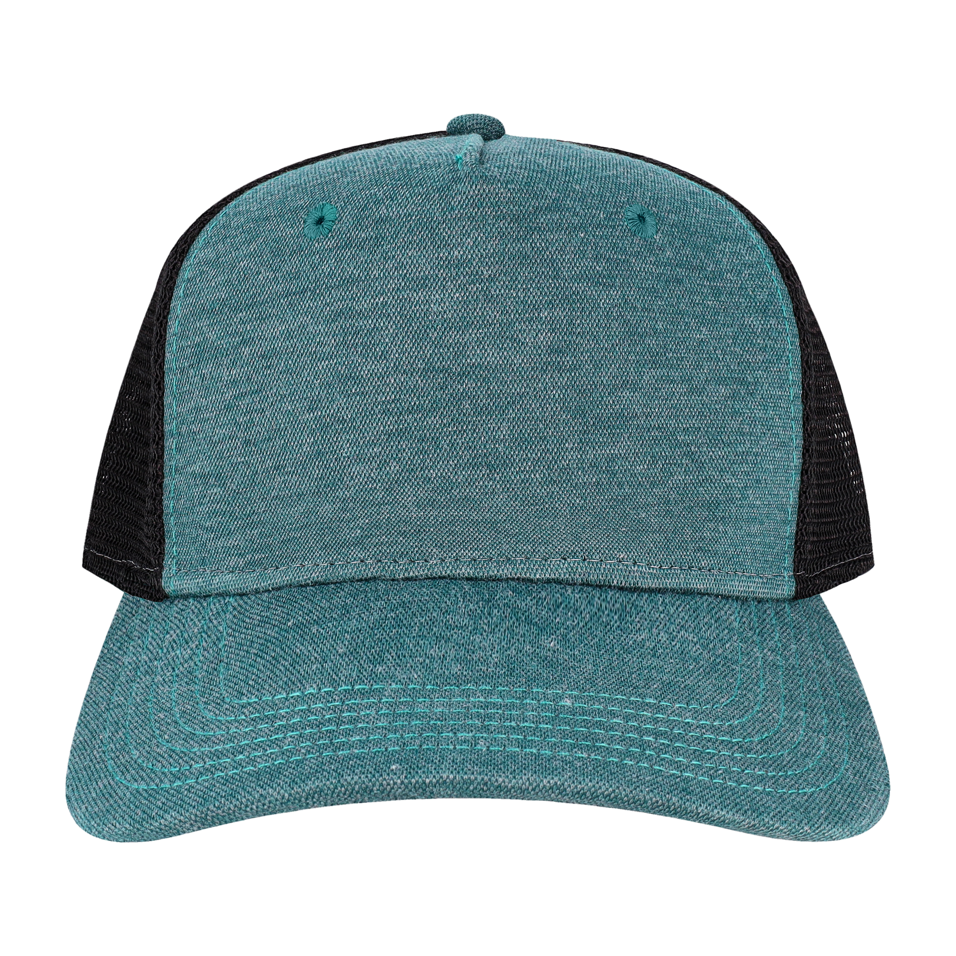 - Fabric: Heathered cotton polyester, firmly woven mesh back panels